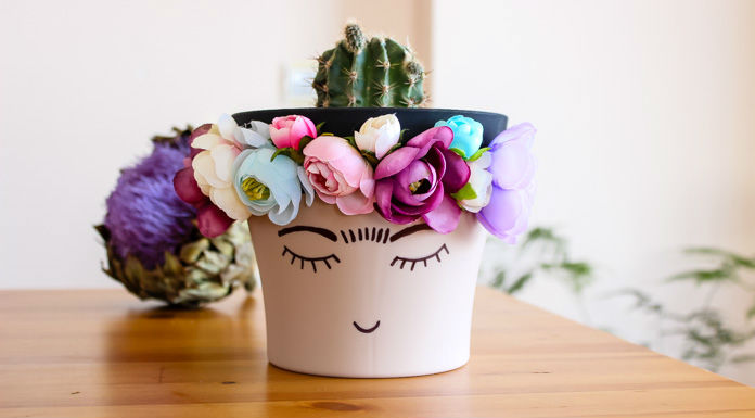 Frida denilince aklınıza ne geliyor? Çatık kaşları, çiçek taçları ve topuzları tabii ki. Bu yüzden saksıya yüz çizerken kaşlarının arasını doldurmayı unutmayın;)