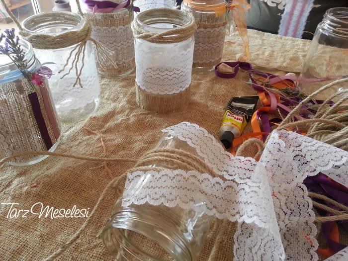 Kır Düğünümüz İçin Kavanoz Süsleme
